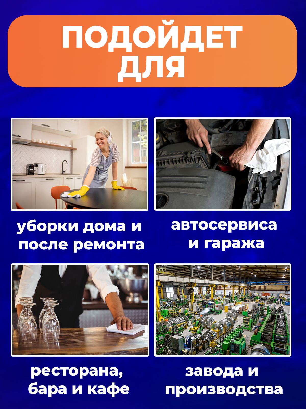 2. Промышленные производства: Используется для технической уборки рабочих зон, протирки станков, конвейеров, оборудования, а также для соблюдения санитарных норм на пищевых предприятиях.